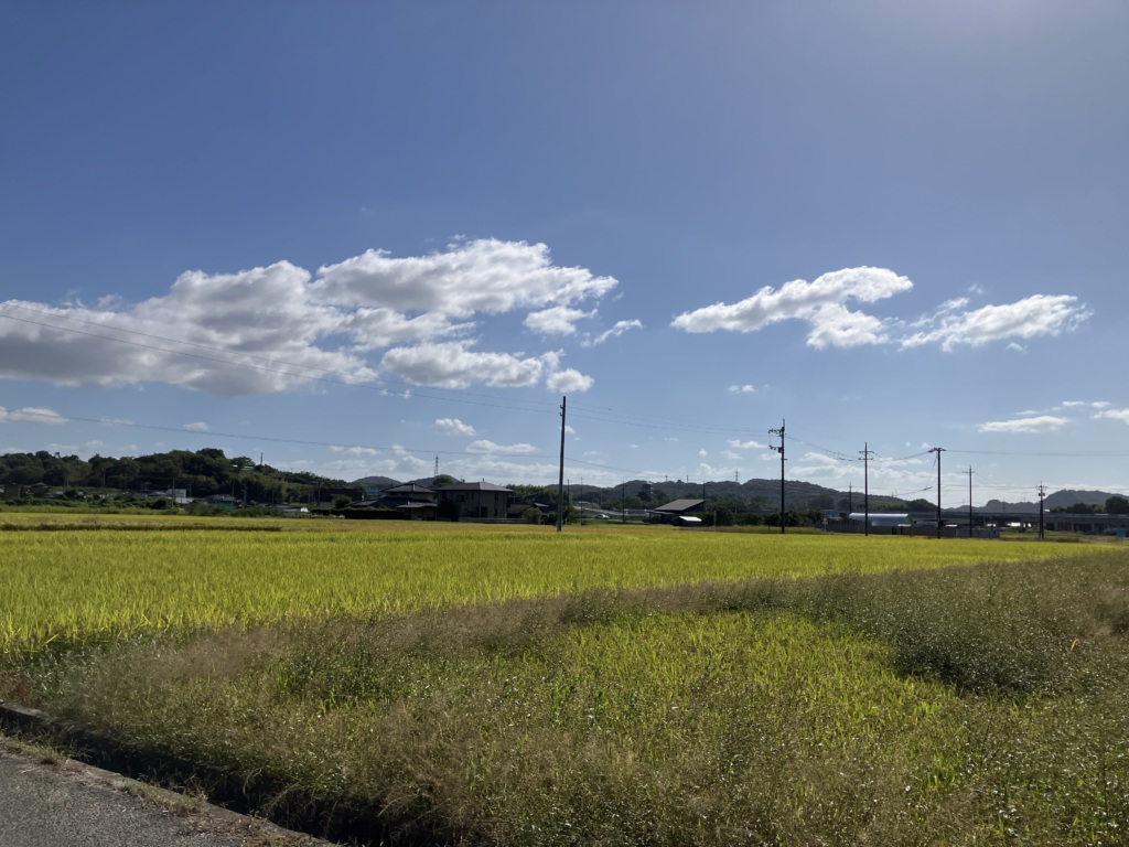 園を出るとすぐ、黄金色の田んぼが広がっていました。