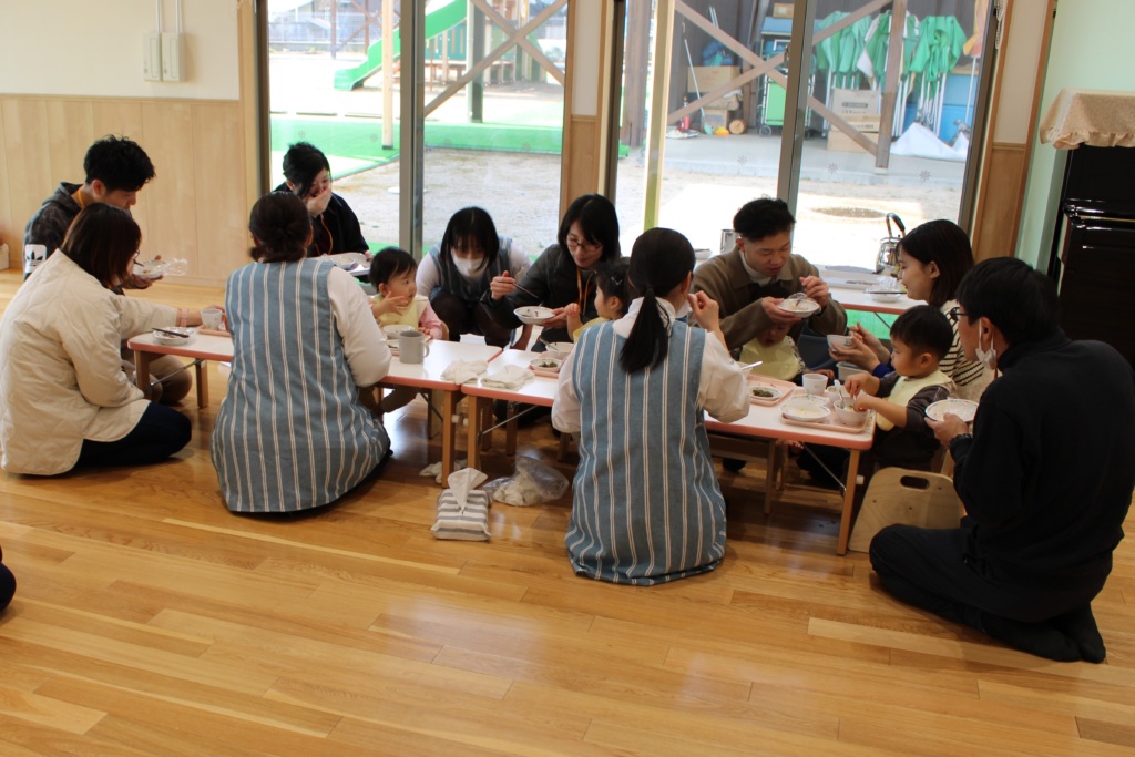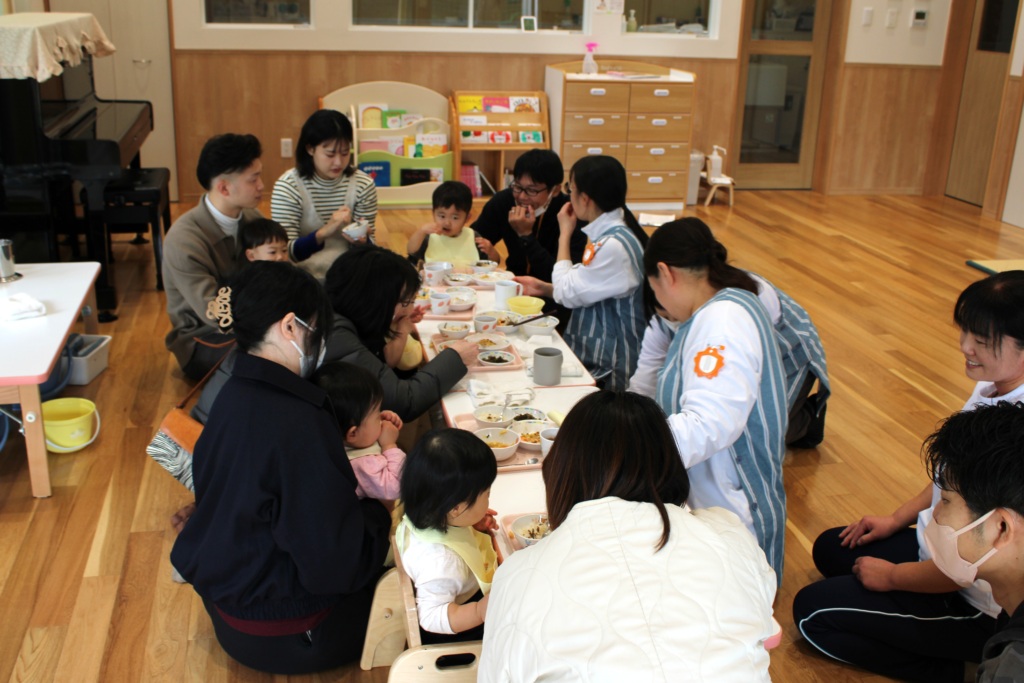 平日にもかかわらずお越しいただいた保護者の皆様、ありがとうございました。今後も安全・安心な食を最優先にしながら、先生たちの温かく応答的な関わりの中で食を楽しむことができるようにしていきたいと思います。