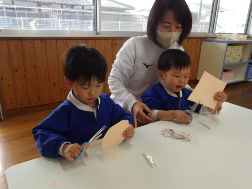 2月はお話「三匹のこぶた」の世界をイメージしながら、造形活動や言葉のやり取りや歌といった表現活動を楽しむことができました。これからもお話の世界を楽しみ、様々な活動をすることを通して、自由に表現する楽しさや友達とやり取りをする面白さなどを感じていきたいと思います。
